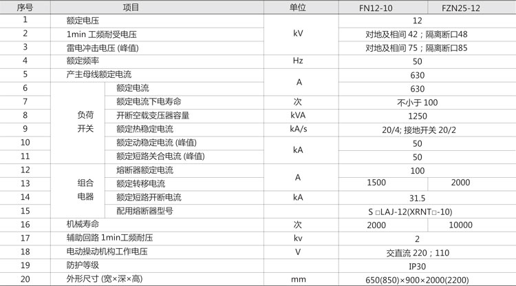 ◎ 既可配電FN12-10型壓氣式負荷開關、組合電器,也可配FZN25-12型真空負荷開關、組合電器,且安裝尺寸完全一致。體積小,免維修,三相聯動結構,具有明顯的隔離斷口。