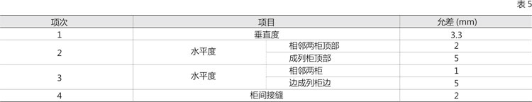 ◎ 裝置單獨或成列安裝時,其垂直度以及柜面不平度和柜間隙縫的偏差符合下表規定。